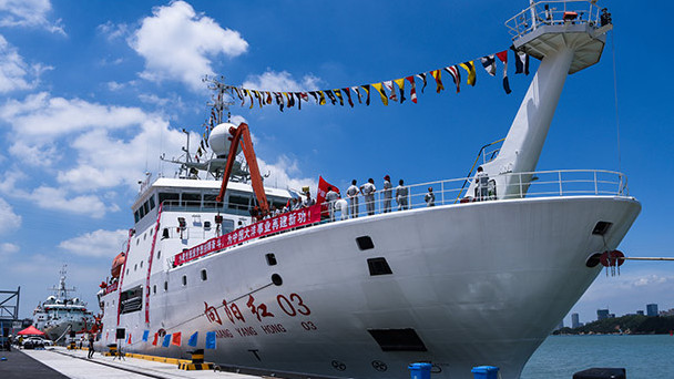 7月14日,“向陽(yáng)紅03”科考船在廈門(mén)港準(zhǔn)備起航。據(jù)介紹,本航次將執(zhí)行我國(guó)深海戰(zhàn)略專(zhuān)項(xiàng)“蛟龍?zhí)胶!惫こ痰闹匾蝿?wù),共計(jì)150天,航程約15000海里。