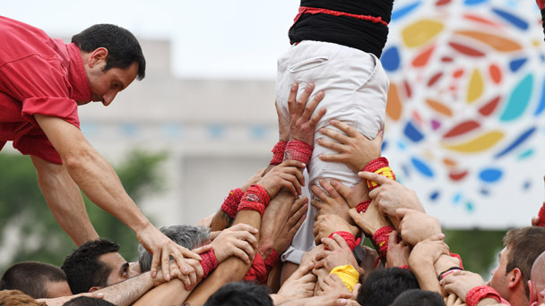 7月6日,在美國首都華盛頓,演員在民俗節上表演疊羅漢。2018史密森學會民俗節分為6月27日至7月1日、7月4日至8日兩個階段在華盛頓舉行。