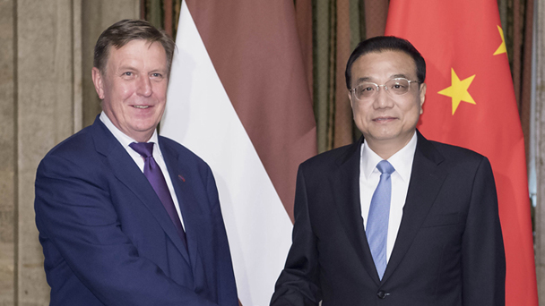 當地時間7月7日下午,國務院總理李克強在索非亞下榻飯店會見拉脫維亞總理庫欽斯基斯。