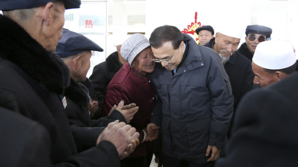 李克強2月1日來到寧夏固原市原州區(qū)中心敬老院,給老人們帶來年貨大禮包。他說,今天是農歷小年,在春節(jié)這個中華民族重要的節(jié)日里,我們不能忘記老人。我代表黨中央、國務院給你們帶來禮物,最重要的是這兩個字——說完他親手把“福”“壽”掛件掛在墻上。