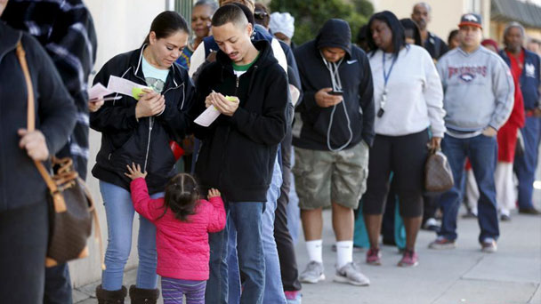 當地時間2016年1月12日,美國民眾排隊搶購強力球(Powerball)彩票。目前的強力球頭獎金額已經創下了美國彩票獎金的最高紀錄,之前的記錄是超級百萬(Mega Millions)彩票在2012年3月開出的頭獎6.56億美元。