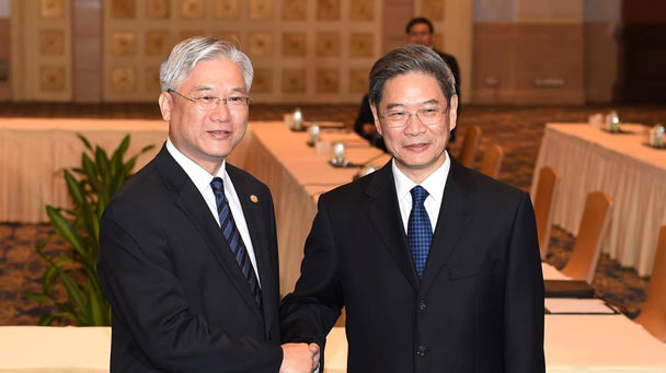 中共中央臺灣工作辦公室、國務(wù)院臺灣事務(wù)辦公室主任張志軍4日宣布,經(jīng)兩岸有關(guān)方面協(xié)商,兩岸領(lǐng)導(dǎo)人習(xí)近平、馬英九將于11月7日在新加坡會面,就推進(jìn)兩岸關(guān)系和平發(fā)展交換意見。