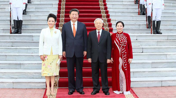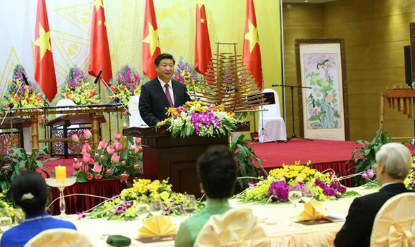 晚宴開始后,阮富仲和習(xí)近平分別致辭,強(qiáng)調(diào)中越關(guān)系不斷向前發(fā)展為兩國人民帶來實(shí)實(shí)在在的好處,雙方要共同推動中越全面戰(zhàn)略合作伙伴關(guān)系長期健康穩(wěn)定發(fā)展。習(xí)近平在致辭中指出,我們深切感受到越南人民對中國人民的友好情誼,深切感受到中越傳統(tǒng)友誼的深厚基礎(chǔ)。中方愿同越方一道,繼續(xù)遵循長期穩(wěn)定、面向未來、睦鄰友好、全面合作的方針和好鄰居、好朋友、好同志、好伙伴的精神,推動中越全面戰(zhàn)略合作伙伴關(guān)系不斷向前發(fā)展。