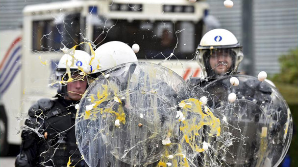 收成好加上俄羅斯制裁,導(dǎo)致歐洲農(nóng)產(chǎn)品價(jià)格一路下挫,憤怒不滿的數(shù)千農(nóng)民9月7日集結(jié)歐盟總部抗議。歐盟隨即決定提撥5億歐元,望能暫時(shí)解決農(nóng)業(yè)困境。