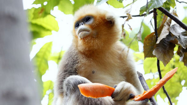6月15日,游客為裕河金絲猴省級自然保護區內的金絲猴喂食。近年來,甘肅省隴南市武都區裕河金絲猴省級自然保護區著力改善區域內生態環境,采取有效措施加強珍稀野生動物保護工作,野生金絲猴數量明顯增加。