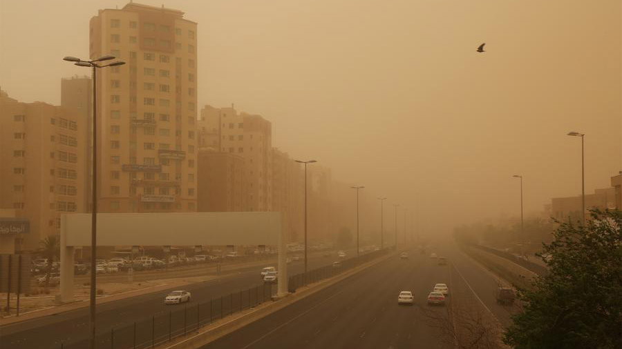 6月17日,人們走在黃沙彌漫的科威特首都科威特城中。新華社記者聶云鵬 攝 6月17日,遭遇沙塵暴襲擊的科威特首都科威特城黃沙彌漫。新華社記者聶云鵬 攝 6月17日,遭遇沙塵暴襲擊的科威特首都科威特城黃沙彌漫。