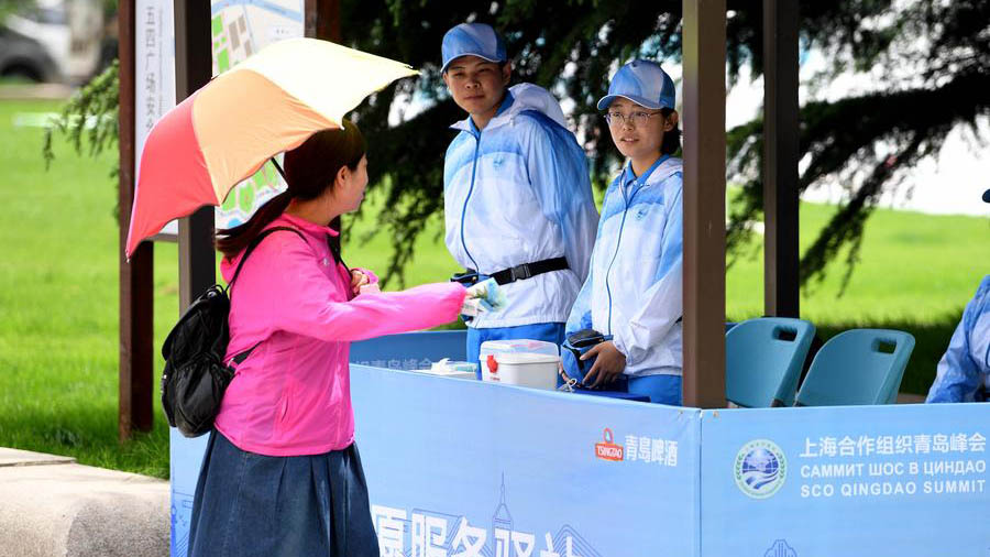 隨著上合組織青島峰會臨近,青島市街頭巷尾隨處可見志愿者,他們用自己的微笑和熱情為市民、游客和國內外賓朋提供愛心志愿服務。