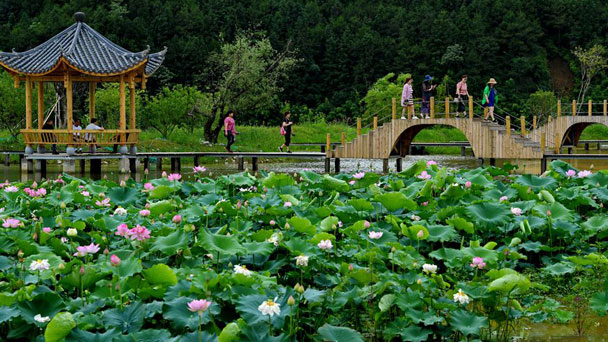 近年來,福建省武夷山市五夫鎮在鄉村振興中把發展特色種植業和旅游產業結合起來,大面積種植荷花,吸引眾多游客前來觀賞,有效帶動鄉村經濟的發展。