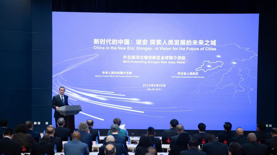 5月28日,以“新時(shí)代的中國(guó):雄安 探索人類發(fā)展的未來(lái)之城”為主題的外交部第十三場(chǎng)省區(qū)市全球推介活動(dòng)在外交部藍(lán)廳舉行。