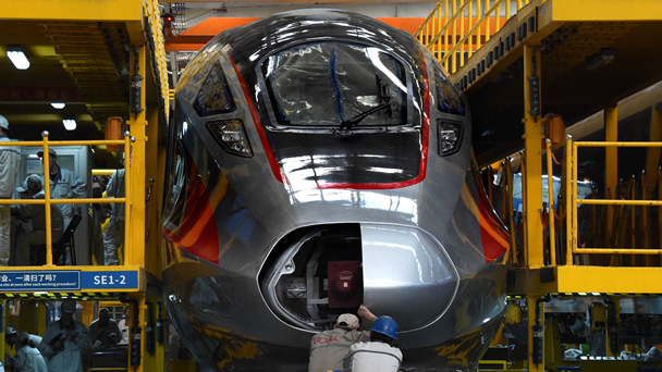 近日,最新16輛長(zhǎng)編組“復(fù)興號(hào)”動(dòng)車組正在中車青島四方機(jī)車車輛股份有限公司做最后的靜態(tài)調(diào)試,該編組投入運(yùn)營(yíng)后,“復(fù)興號(hào)”客運(yùn)量將會(huì)實(shí)現(xiàn)倍增。