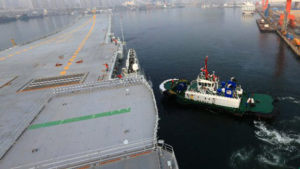 今天上午7時(shí)許,我國(guó)第二艘航母從大連造船廠碼頭啟航,赴相關(guān)海域執(zhí)行海上試驗(yàn)任務(wù)。主要檢測(cè)驗(yàn)證動(dòng)力系統(tǒng)等設(shè)備的可靠性和穩(wěn)定性。