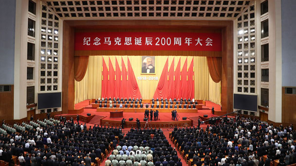 5月4日上午10時(shí),紀(jì)念馬克思誕辰200周年大會(huì)在人民大會(huì)堂舉行。新華社記者 丁林 攝