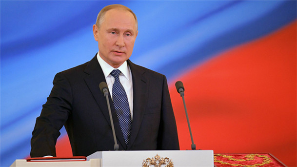 5月7日,俄羅斯總統(tǒng)普京在莫斯科克里姆林宮舉行的就職典禮上講話。當(dāng)日,俄羅斯總統(tǒng)就職典禮在莫斯科克里姆林宮舉行。