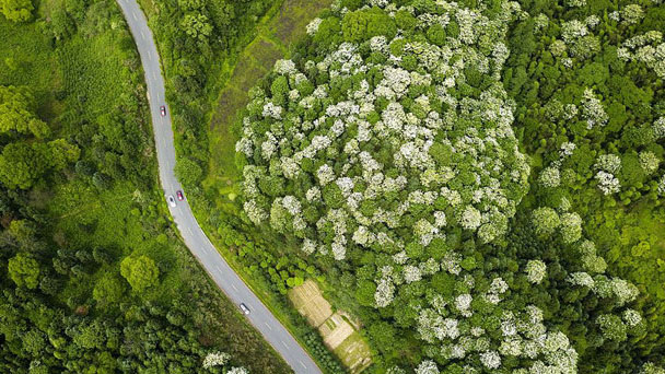 2018年5月1日,江西省新余市,游客車(chē)輛穿行于仙女湖區(qū)鳳凰灣野生泡桐林間。仙女湖區(qū)鳳凰灣辦事處于2012年被評(píng)為首批“國(guó)家級(jí)生態(tài)鄉(xiāng)鎮(zhèn)”,全境80%的林地為生態(tài)公益林。仙女湖區(qū)鳳凰灣辦事處于2012年被評(píng)為首批“國(guó)家級(jí)生態(tài)鄉(xiāng)鎮(zhèn)”,全境80%的林地為生態(tài)公益林。