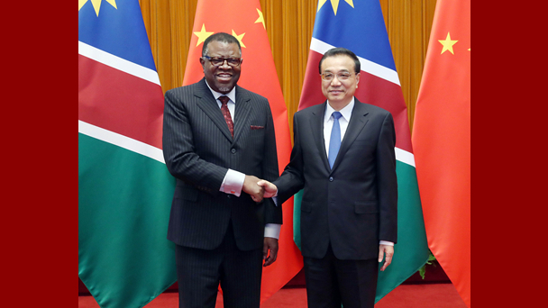3月30日,國務院總理李克強在北京人民大會堂會見來華進行國事訪問的納米比亞總統根哥布。
