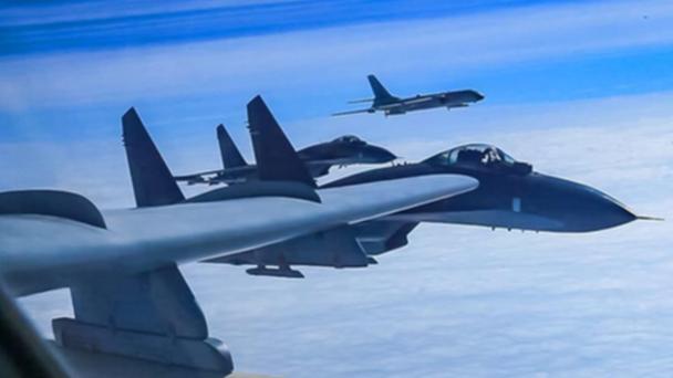 中國空軍新聞發言人申進科大校3月25日發布消息,中國空軍近日出動轟-6K、蘇-30等多型多架戰機飛越宮古海峽,成體系前出西太平洋開展實戰化軍事訓練