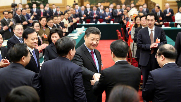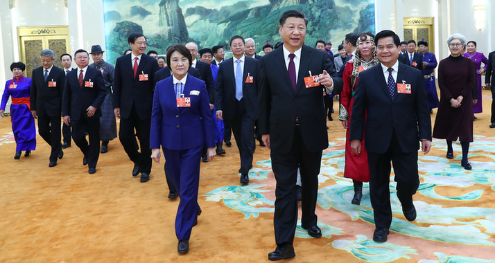 5日下午,中共中央總書(shū)記、國(guó)家主席、中央軍委主席習(xí)近平來(lái)到他所在的十三屆全國(guó)人大一次會(huì)議內(nèi)蒙古代表團(tuán)參加審議。習(xí)近平總書(shū)記向內(nèi)蒙古廣大干部群眾表示衷心感謝,并同代表們合影。