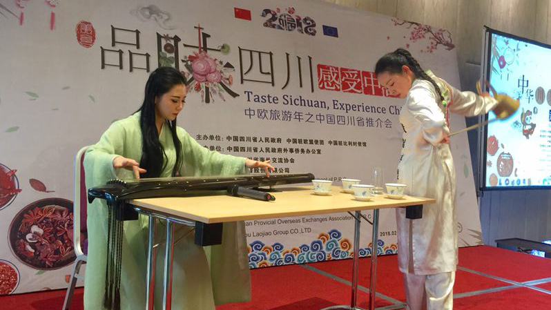 四川省和中國駐歐盟使團舉辦推介會,向歐洲展示豐富的巴蜀非遺文化、鮮美的川菜、清香的川茶、醇香的川酒和精彩的川劇。
