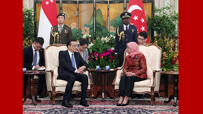 當地時間11月14日下午,國務院總理李克強在新加坡總統府會見新加坡總統哈莉瑪。哈莉瑪表示,40年前中國開啟改革開放進程,讓中國走上快速發展道路,為中國和世界帶來利益,新中關系也開啟了新的征程。