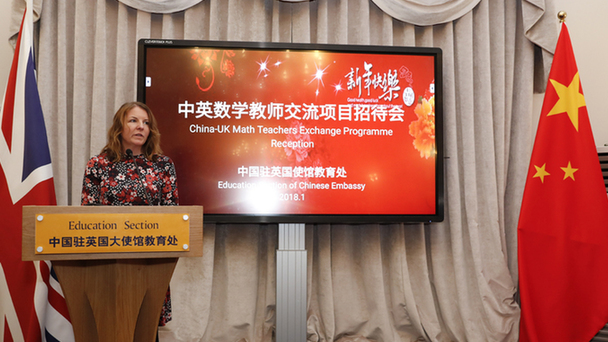 當地時間1月26日晚,中國和英國教育界代表在中國駐英國大使館教育處慶祝第四輪中英數學教師交流項目取得圓滿成功,同時也為赴英參加交流活動的36名上海數學教師送行。