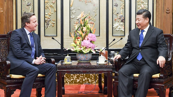 1月11日,國家主席習(xí)近平在北京釣魚臺(tái)國賓館會(huì)見英國前首相卡梅倫。