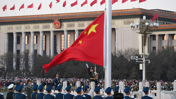 1月1日晨,北京天安門廣場(chǎng)舉行隆重的升國(guó)旗儀式,這是由人民解放軍擔(dān)負(fù)國(guó)旗護(hù)衛(wèi)任務(wù)后,首次舉行的升旗儀式。