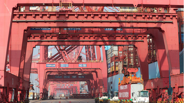 10億噸!27日9時15分許,寧波舟山港穿山港區(qū)集裝箱碼頭6號泊位,一個身披“紅妝”的集裝箱被穩(wěn)穩(wěn)吊裝至“美瑞馬士基”輪上,使寧波舟山港成為全球首個年貨物吞吐量超過10億噸的大港。