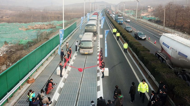 當日,我國首個承載式光伏高速公路試驗段在濟南建成通車,實現(xiàn)利用高速公路路面并網(wǎng)發(fā)電。光伏路面鋪設(shè)長度1080米、凈面積5875平方米,鋪設(shè)主行車道和應急車道;分布式光伏并網(wǎng)發(fā)電裝機容量峰值功率817.2千瓦,預計可實現(xiàn)年發(fā)電量約100萬千瓦時。