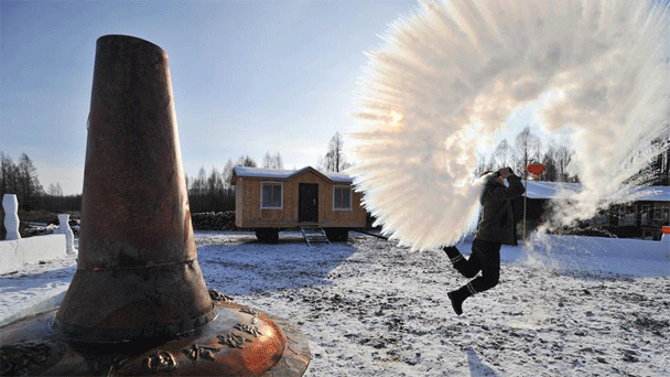這是12月23日在內蒙古根河市敖魯古雅鄂溫克民族鄉拍攝的馴鹿雕塑,遠處是撮羅子(樹皮搭建的帳篷)造型建筑。根河市素稱“中國冷極”,當地利用冰雪資源,并結合獨特的鄂溫克民族風情,打造冬季旅游項目,為游客帶來不一樣的冰雪體驗。