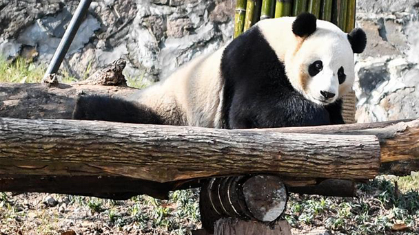 12月20日,26歲的大熊貓“英英”在中國大熊貓保護(hù)研究中心都江堰基地里一邊享受冬日暖陽一邊吃新鮮的竹子。連日來四川成都天氣晴好,中國大熊貓保護(hù)研究中心都江堰基地里的國寶大熊貓?jiān)诠ぷ魅藛T的精心照顧下安逸的享受冬日暖陽。