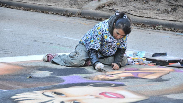 11月19日,在美國得克薩斯州休斯敦,藝術家在創作街畫。