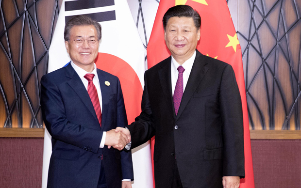 國家主席習(xí)近平11日在越南峴港會(huì)見韓國總統(tǒng)文在寅。