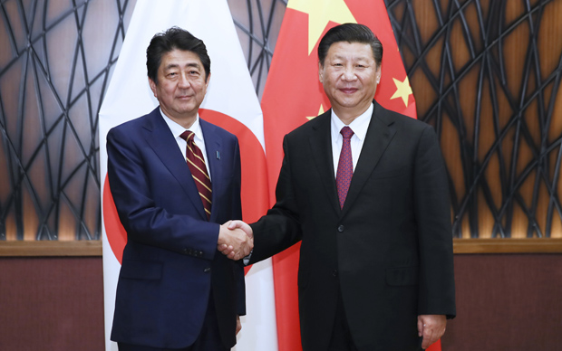 國家主席習(xí)近平11日在越南峴港會(huì)見日本首相安倍晉三。