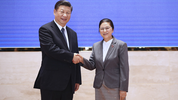 11月14日,中共中央總書記、國家主席習(xí)近平在萬象國家會(huì)議中心會(huì)見老撾國會(huì)主席巴妮。