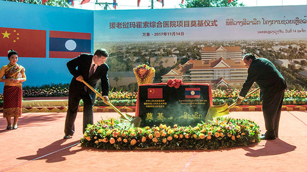 11月14日,中共中央總書記、國家主席習(xí)近平同老撾人民革命黨中央委員會(huì)總書記、國家主席本揚(yáng)在萬象一道出席瑪霍索綜合醫(yī)院奠基儀式。