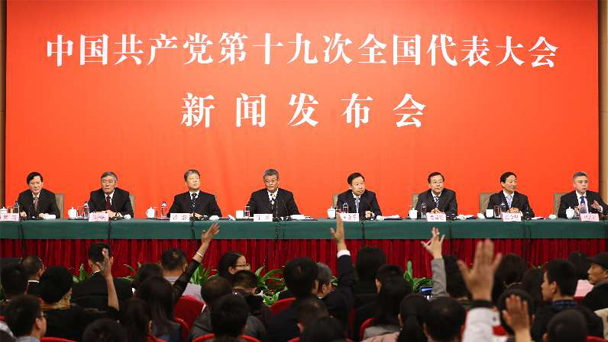 2017年10月26日,中國(guó)共產(chǎn)黨第十九次全國(guó)代表大會(huì)新聞發(fā)言人庹震召開(kāi)專題新聞發(fā)布會(huì),請(qǐng)中央紀(jì)委副書(shū)記肖培等人解讀十九大報(bào)告,并回答記者提問(wèn)。