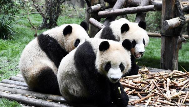 10月28日,成都大熊貓繁育研究基地的大熊貓寶寶們?cè)谛茇垬?lè)園賣萌,憨態(tài)可掬,迷倒眾粉絲。