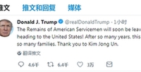 白宮表示,朝鮮已經歸還朝鮮戰爭時期在朝鮮陣亡的美軍遺骸。白宮當地時間26日夜發聲明稱,一架裝載遺骸的軍機已經離開朝鮮釜山,正飛往美軍駐韓國的吳山空軍基地。