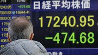 1月14日,東京股票市場的日經平均指數大幅回落。一度跌幅超過700點,并跌破作為心理防線的1萬7000點大關。