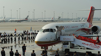 11月29日下午,ARJ21-700新支線飛機從上海抵達成都,交付成都航空有限公司。這是首架交付的ARJ21-700飛機。