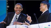 當地時間11月18日,美國總統奧巴馬出席在菲律賓馬尼拉舉行的APEC峰會,他在工商領導人峰會的對談環節上,與阿里巴巴董事局主席馬云對話交流。