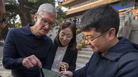 在開發者的講解中,庫克對中國傳統文化流露出好奇和興趣,并表示希望幫助更多的開發者將前沿技術應用在傳統文化中。