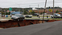 當(dāng)?shù)貢r間11月7日晚,默里迪恩市一家餐廳外停車場上出現(xiàn)了一個約183米長的巨型天坑,餐廳顧客目瞪口呆看著他們的汽車被天坑吞噬。