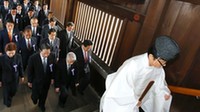 日本自民黨、民主黨、次世代黨等組成的跨黨派聯盟約70名議員,不顧中韓的反對,20日上午集體參拜供奉二戰甲級戰犯的靖國神社,參加秋祭活動。