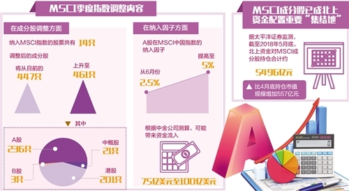 國際知名指數編制公司摩根士丹利資本國際指數(英文簡稱MSCI)公布了2018年8月份的季度指數審議結果,將落實A股納入MSCI新興市場等指數的第二步,把現有A股的納入因子從2.5%提高至5%