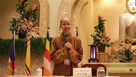 講座者,是大名鼎鼎的佛光山星云大師,他身后瘦削的女翻譯,是他的首席翻譯妙光法師。