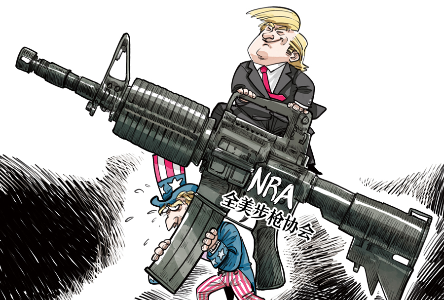 美國總統(tǒng)特朗普在全美步槍協(xié)會(NRA)年會上重申支持擁槍。