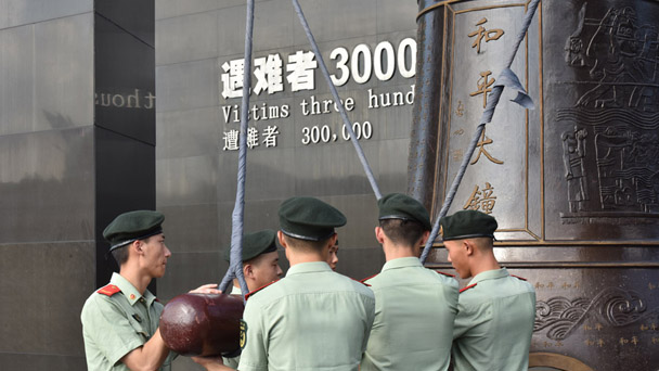 2018年8月15日上午,侵華日軍南京大屠殺遇難同胞紀念館在集會廣場舉行“升國旗、撞響和平大鐘”儀式化參觀活動。