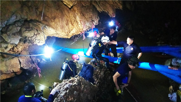 泰國12名少年足球運(yùn)動員和1名教練6月23日進(jìn)入泰國一處國家公園洞穴內(nèi)“探險”后失蹤。連日來,泰國、美國等國的多支救援隊(duì)展開晝夜搜救行動。中國洞穴救援專家隊(duì)6月29日抵達(dá)泰國,加入對13名失蹤泰國少年足球隊(duì)成員的搜救行動。