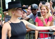 當(dāng)?shù)貢r間2016年8月3日,美國紐約,Lady Gaga 黑裙優(yōu)雅現(xiàn)身手持鮮花扮相復(fù)古搶鏡。
